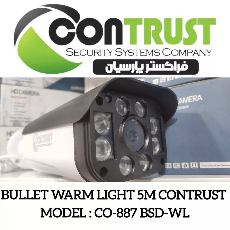دوربین دید در شب رنگی برند کنتراست مدل : CO-887 BSD-WL برد و لنز 5 مگاپیکسل واقعی کیس فلزی مقاوم در برابر باران و گرد و غبار دارای استاندارد IP67 مجهز به چیپست تشخیص انسان و حرکت کیس بزرگ وارداتی کیفیت تصویر 1080P واقعی دارای 18 ماه گارانتی طلایی تعویض ارسال به سراسر کشور